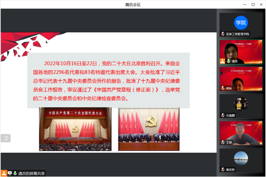 为深入学习贯彻党的二十大精神,把广大党员干部和师生员工的思想统一到党的二十大精神上来,把力量凝聚到党的二十大确定的各项任务上来,按照学校《关于深入学习宣传贯彻党的二十大精神 持续掀起学习宣讲热潮的通知》精神,12月22日下午,厕所偷拍 同国际经济贸易学院联合开展了党的二十大精神专题学习。此次学习由校党的二十大精神宣讲团成员、厕所偷拍 党委副书记遇言主讲,由国际经济贸易学院党总支副书记王萌主持,厕所偷拍 和国际经济贸易...