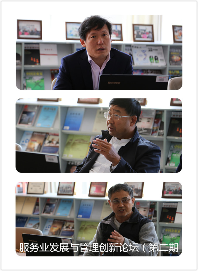应邓健院长的邀请,吉林大学经济学院副院长、博士生导师李政教授,吉林大学管理学院院长、博士生导师赵树宽教授、吉林省人民政府发展研究中心副巡视员马利彪研究员作为嘉宾参与了本次论坛。论坛由副院长宿慧爽副教授主持。论坛举行过程中,三位嘉宾围绕自己的研究成果并结合各自的心得体会,与参与论坛的师生交流了服务业管理创新的具体研究思路。李政副院长结合自己多年参与吉林省服务业发展研究报告编制的经验,与大家发分享了自己在吉林省服务业创新发展战略选择方面的心得体会,指出了符合吉林省服务业发展的具体方向。赵树宽院长则从整个社会发展的角度,阐述了与服务业企业创新发展相关的资源、环境、动力等诸多影响因素,并介绍了服务业管理创新的可行研究思路。马利彪副主任根据自己多年来参与省委省政府重大决策的工作经历,和与会人员交流了政府服务业管理决策制定与优化的具体程序,并向与会人员介绍了为政府服务业管理提供决策咨询的具体流程和注意事项。三位嘉宾的发言引起了现场师生的热烈讨论,三位嘉宾也分别解答了老师们的提问。