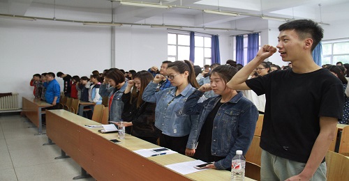 首先,院团委副书记许家铭老师就如何学习习近平总书记讲话、青年学生应学习哪些内容、学习习近平总书记讲话的意义三方进行了讲解。随后各班级代表分别以弘扬抗战精神、纪念五四运动、学习习近平总书记政法大学讲话、践行社会主义核心价值观、班级支部建设五个角度为切入点,结合自身实际情况,就如何做合格共青团员进行了发言。最后,同学们满怀激动之情重温了“入团誓词”。