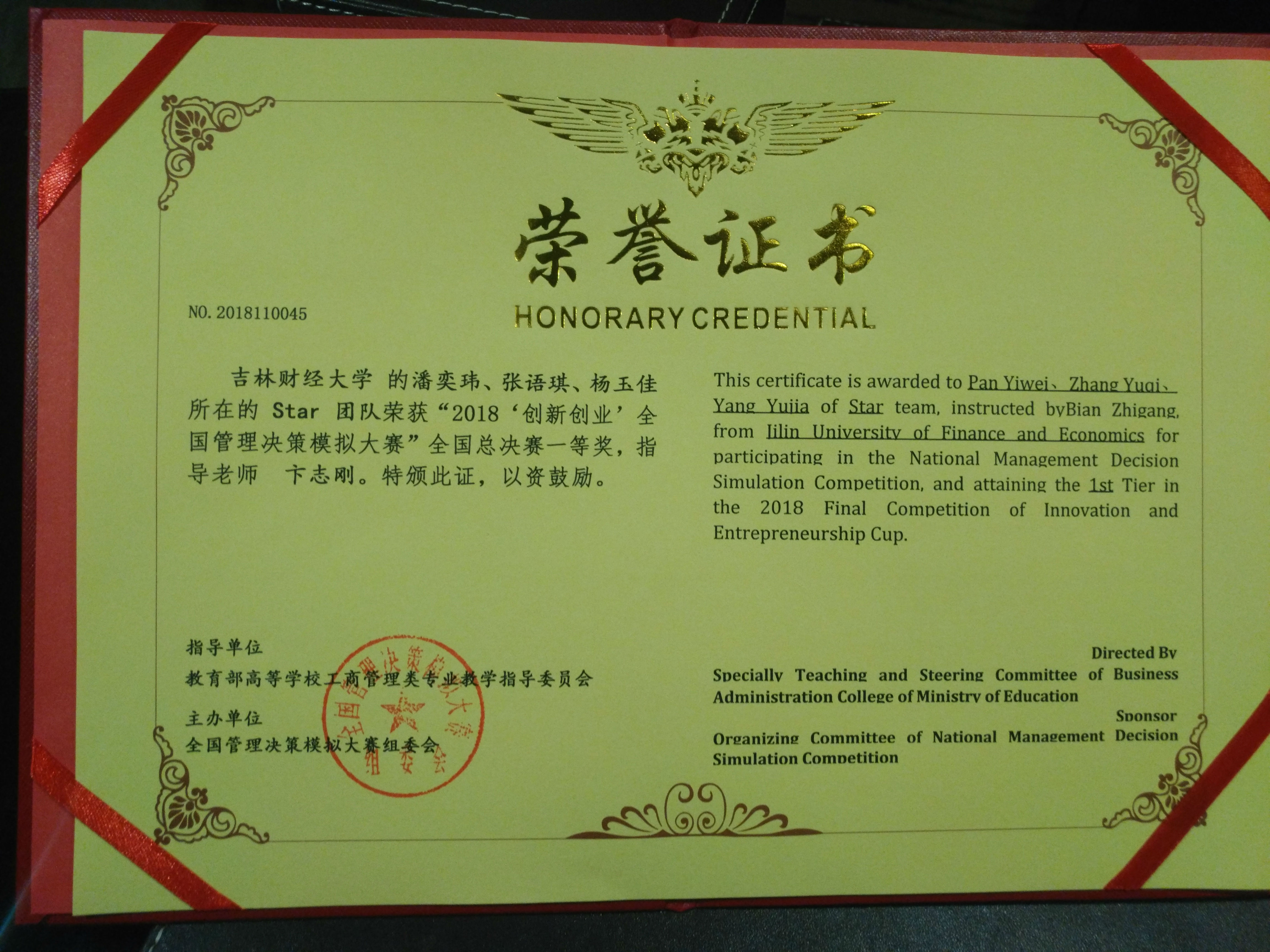 本届比赛自启动以来,得到了全国700多所高校的积极响应,吸引了31000多只队伍参赛。最终90多支队伍闯入全国总决赛。在学院领导和老师的指导与支持下,由学生潘奕玮,张语琪,杨玉佳组成的队伍获得全国一等奖。