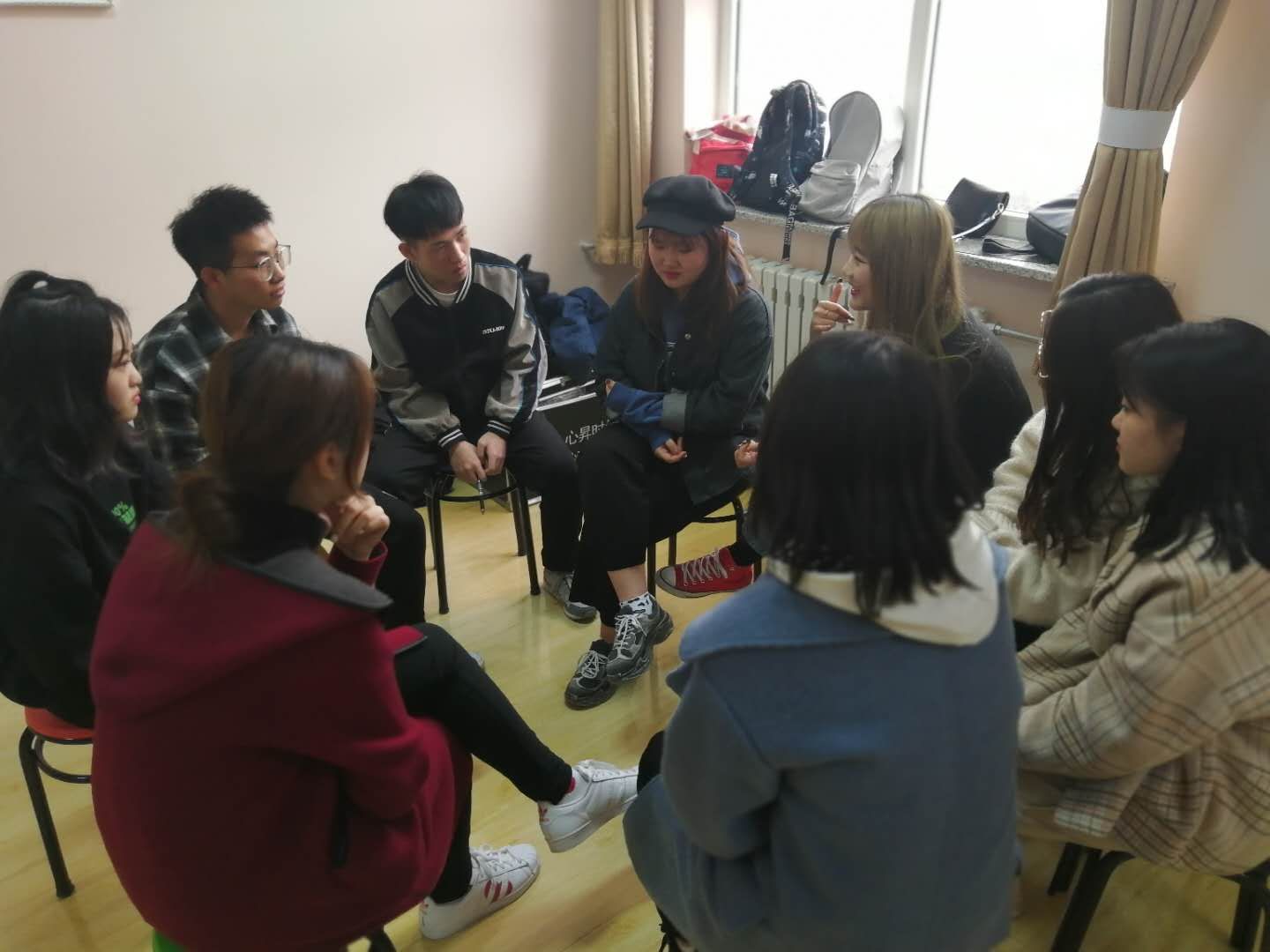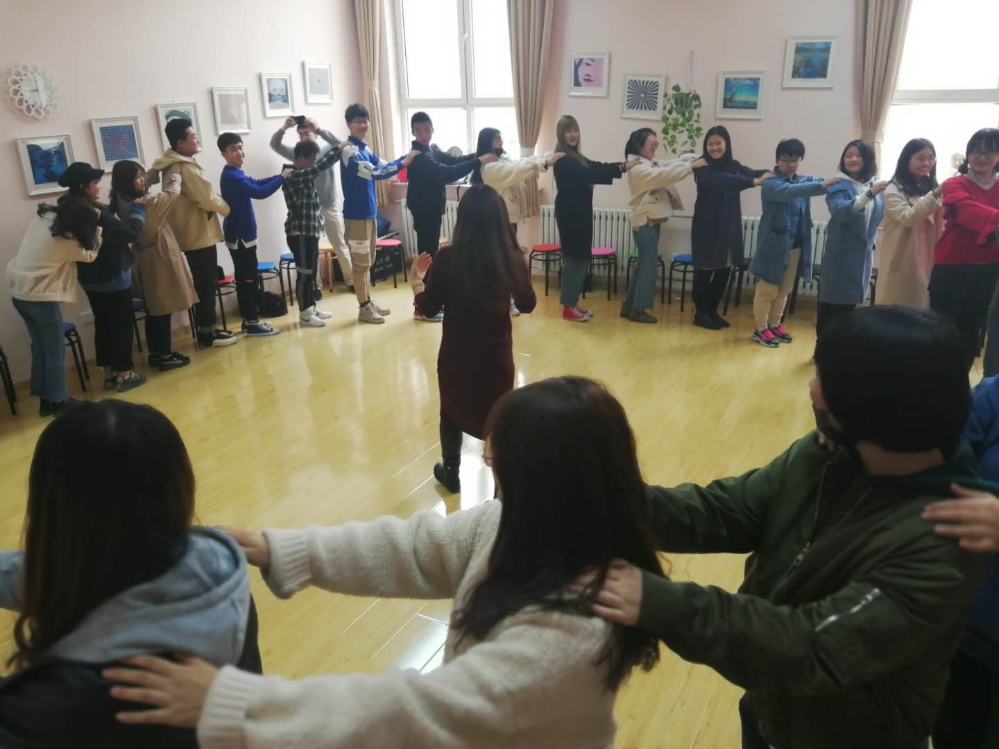 活动伊始,王海燕老师以随机分组的原则对同学们进行了分组,将同学们分成四个小组,让同学们在组内进行自我介绍,相互了解对方,并在五分钟内每个组选出一个小队长,想出一个队名,大家一起想小组的口号,其乐融融,一起唱小组的队歌。然后在所有组面前进行所有人的自我介绍,介绍每个组的队名和口号以及唱出队歌给大家分享。慢慢的大家对于开始的紧张和压力已经放下了不少。