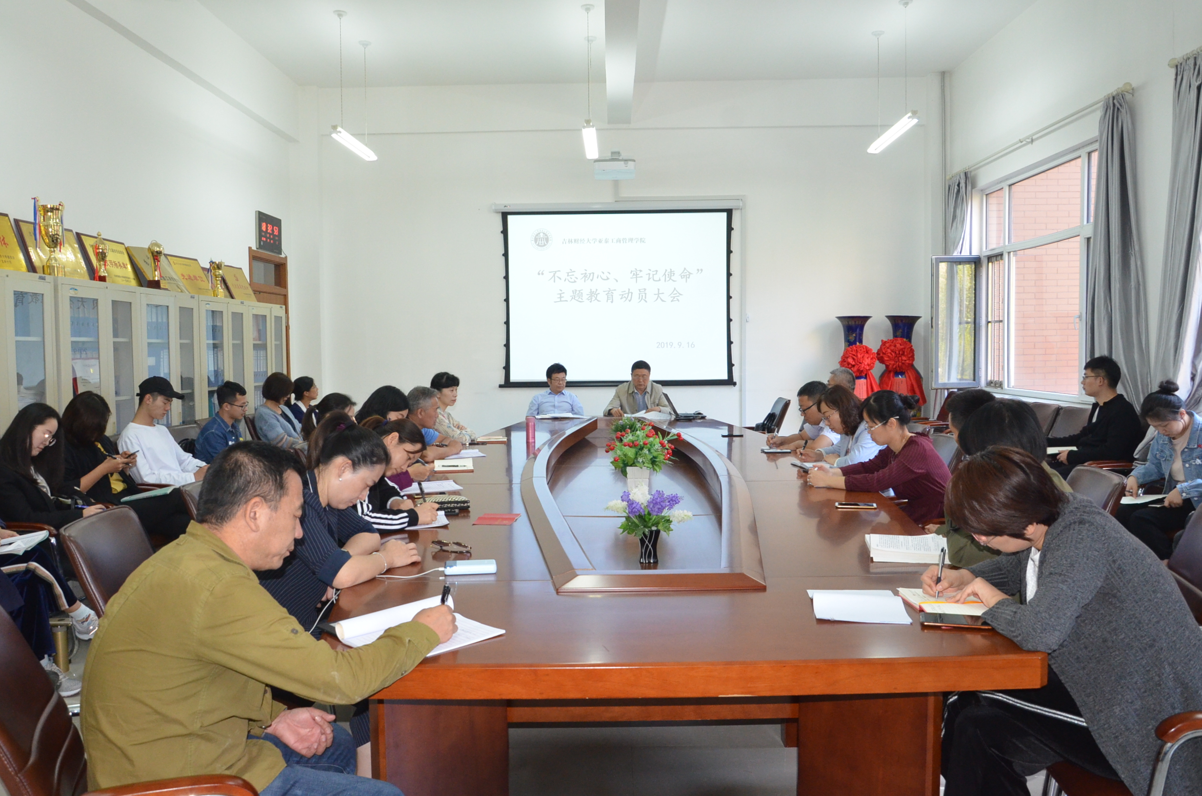 于2019年9月16日,在综合楼118室组织教师、学生党员召开“不忘初心、牢记使命”主题教育动员大会。