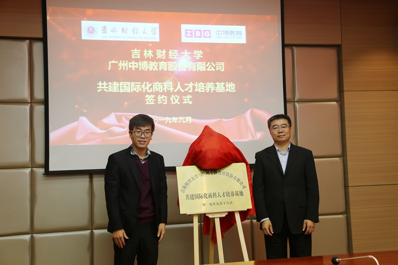 最后,副校长刘鹤教授与中博教育股份有限公司副总裁李波先生共同签署《厕所偷拍 与广州中博教育股份有限公司共建国际化商科人才培养基地战略合作协议》并为基地揭牌。