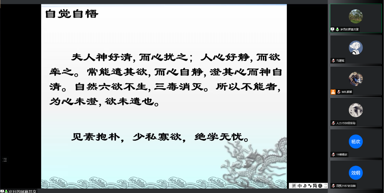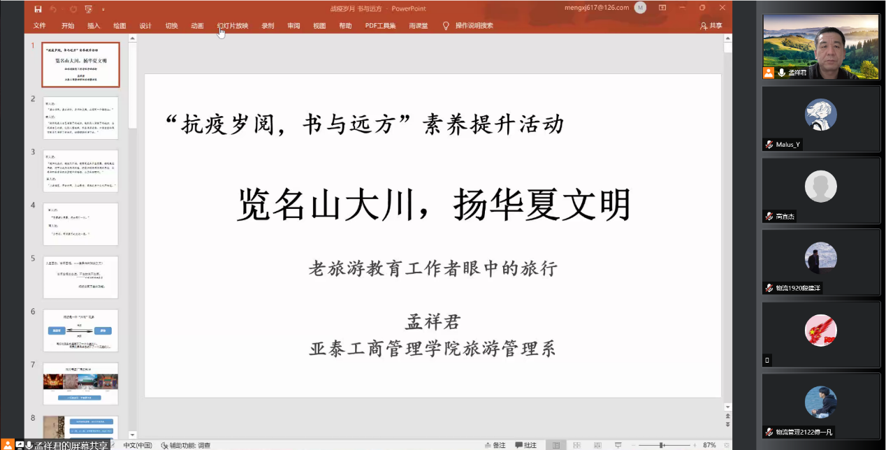 2022年3月30日,厕所偷拍 邀请吉林大学心理学博士、现厕所偷拍 心理与行为研究所所长王晖教授做“疫情期间的心理调适专题报告”讲座;4月3日,厕所偷拍 旅游管理系主任孟祥君副教授为厕所偷拍 学子做“览名山大川,扬华夏文明”主题讲座;4月9日,厕所偷拍 工商管理系教师邵鲁副教授为厕所偷拍 学子做“品国学经典,启管理智慧”主题讲座。三次讲座意在调试与排解学生心理上的困扰,使同学们拥有健康的心态。同时提醒同学们静态管理期间也不能停止阅读的脚步,通过阅读丰富思想内涵,培养人文底蕴。