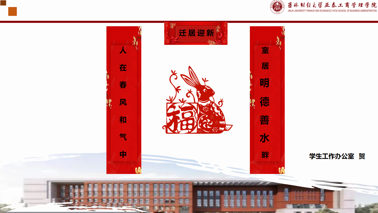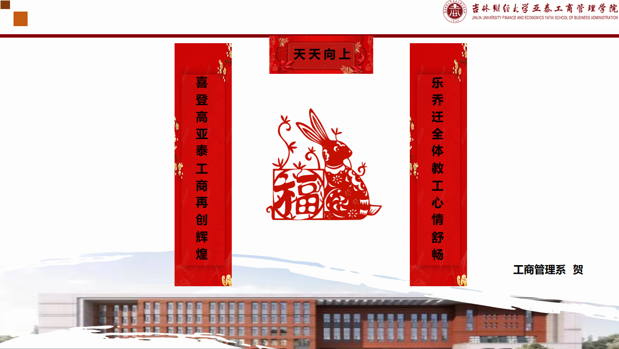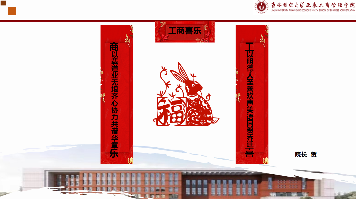 “我为工商赋新辞”拉开了学院庆祝帷幕,学院党委书记梁晓秋,院长崔宏桥,副书记遇言,副院长盛亚军,MBA教育中心,各系及学生工作办公室分别祝贺学院乔迁之喜。