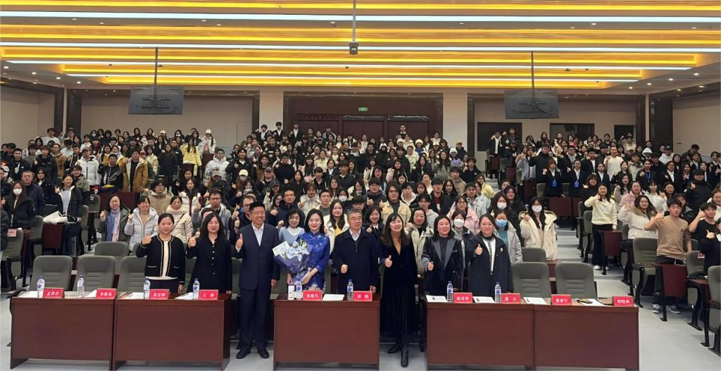 聘任仪式结束后,张超凡以《以信仰为光,赴青春之约》为题,从勇敢追梦、创业奋斗、科技助残、榜样同行四个核心维度展开分享,深情讲述了自己在先天失去左前臂的情况下依然向阳而生的成长经历,身处逆境仍旧照亮他人的支教生涯,创业维艰但永不言弃的奋斗历程,以及热心公益、投身慈善的科技助残之路。她鼓励同学们不必迷茫于人生的分岔口,要积极探索自身的无限可能,明确人生目标并为之不懈努力。最后,张超凡老师寄语同学们“人生万事须自为,跬步江山即寥廓”,在新时代的浪潮中点亮梦想、传递希望,创造属于自己的“超凡人生”。