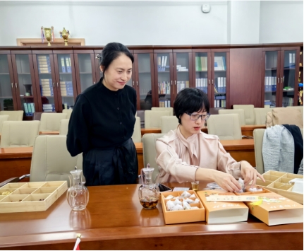 讲授活动结束后,老师们亲自动手,根据自己的口味搭配饮品,大家在选茶、泡茶、品茶的过程中,不仅学习了养生知识,也体验了动手实践的乐趣,在品饮过程中交流心得,享受茶香带来的宁静与愉悦,感受到了茶文化的个性化与包容性。