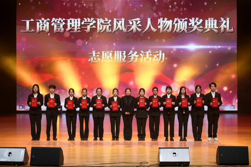 学院党委副书记遇言为志愿服务优秀学生代表颁奖。