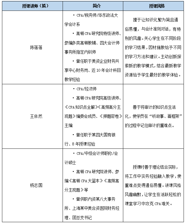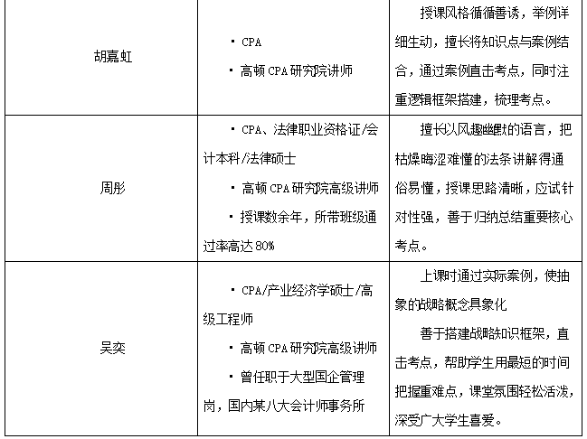 为CPA实验班配备高水平、高质量授课师资,所有授课讲师均具备CPA证书和多年教学经验。90%讲师具备研究生及以上学历,并兼具实务工作经验。