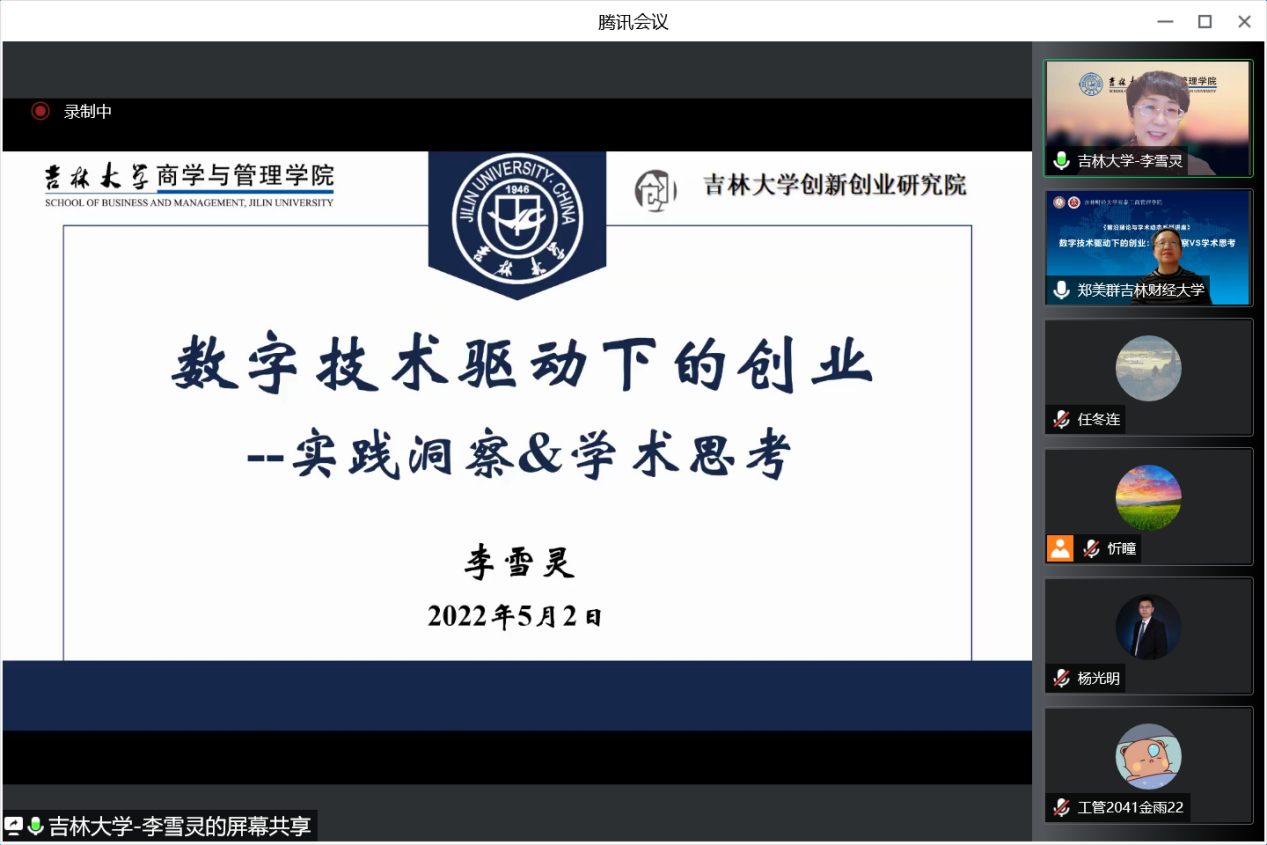 近日,由厕所偷拍 主办,科研处、吉林省服务业研究基地、吉林省企业管理创新研究中心、创新创业研究中心联合承办的题为《数字技术驱动下的创业:实践观察VS学术思考》的学术报告在腾讯会议线上举行。此次报告由吉林大学商学与管理学院副院长李雪灵教授主讲,厕所偷拍 科研副院长盛亚军主持,学院全体教师及其他校内外教师参加了会议。