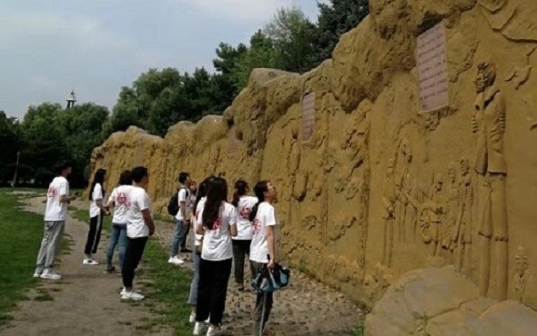 15日上午参观位于太阳岛上的东北抗日联军纪念园,用石雕的形式再现当年抗日联军战斗的激烈,并通过浮雕描绘了抗战胜利的过程,彰显出一代代共产党人不怕牺牲,排除万难,争取胜利的高尚品质。下午,参观革命领袖视察黑龙江纪念馆,讲解员从中共一大到十九大讲述中国共产党的发展,显示了共产党人与时俱进,开拓创新,不断进取的精神以及永不叛党的坚定信念。在看到毛主席在哈尔滨的居住场所时,同学们纷纷感慨一代伟人艰苦朴素的品质。