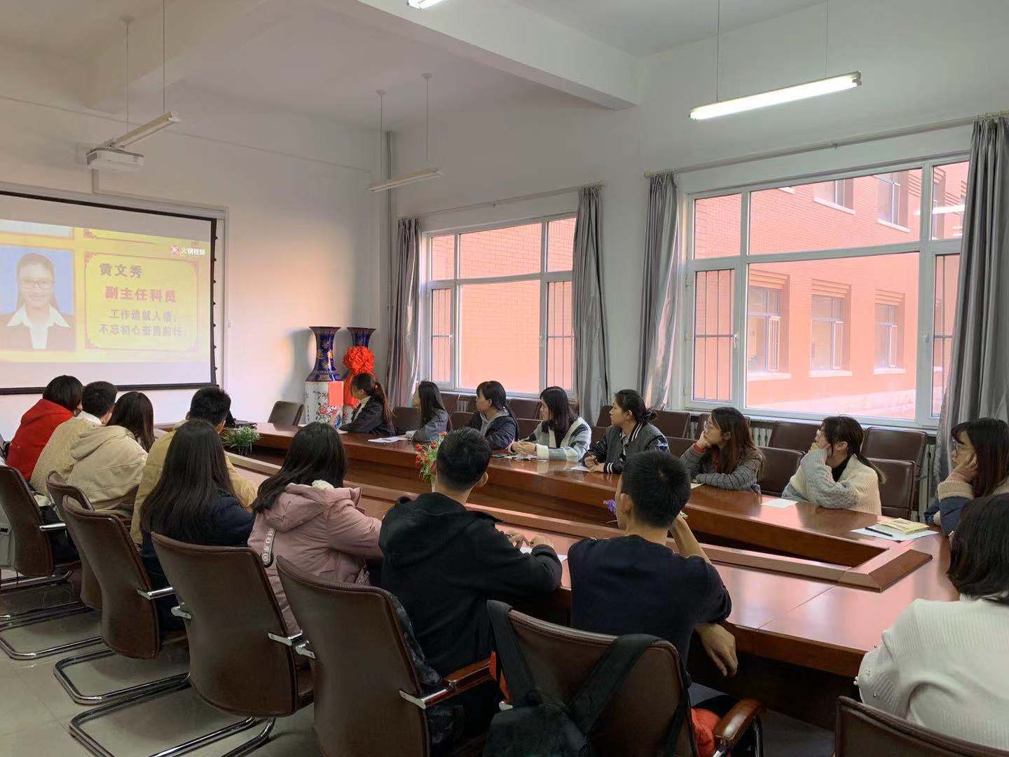 首先,由学生党支部负责人郑鏑介绍本次会议目的,响应党中央号召,向黄文秀同志学习,做习近平新时代中国特色社会主义思想的坚定信仰者和忠实实践者,自觉把人生追求与党的事业紧密联系,与时代同步伐、与人民共命运,积极投身到党和人民最需要的地方和工作中去。