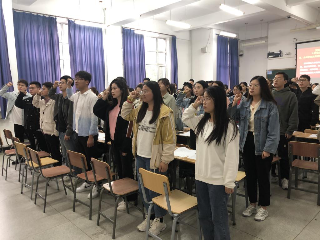 接着,党员杨雅迪带领全体预备党员在党旗下进行了庄严宣誓。通过宣誓,同学们牢记党的宗旨,增强党员的党性观念,坚定了遵守誓词各项内容的决心,以及对党组织和党的事业承担的政治责任。