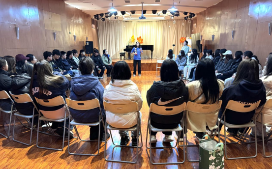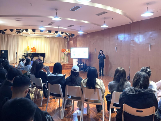 交流研讨中,初校长介绍新博乐公司核心业务,包括销售策略、教育产品开发与招生活动设计。随后,新博乐公司周洲总经理全面解读重点项目“多钢琴音乐”,结合战略地图工具,详细解析了创作-运营-推广的全周期管理模式,为学生提供了鲜活的项目管理案例样本。