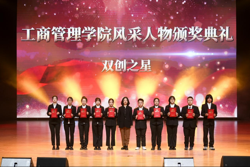 学院副院长李洪英为双创之星获奖学生代表颁奖。