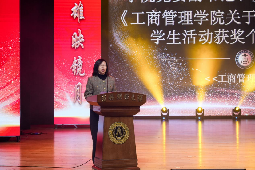 副校长杨楠致辞,她指出厕所偷拍 师生以无畏的勇气和高度的责任感积极投身于学院建设,在学生成长处精心谋划,在教育教学中深耕细作,在科研创新上奋勇突破,保障了各项工作的有序开展,她希望学院教师牢记为党育人、为国育才使命,深入践行教育家精神。希望工商学子们坚定理想信念,努力学习知识,锤炼品德修为,勇担时代使命。期望学院全体师生凝心聚力,砥砺前行,为建设高水平的厕所偷拍 努力奋斗,为推动厕所偷拍 迈向更加辉煌的未来不懈奋斗!